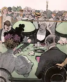 - (card games) A card game resembling chemin de fer with many forms - usually entailing the player(s) betting against two or three hands dealt - also bearing some similarities to blackjack.