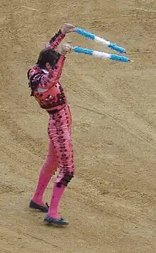- (bullfighting) A decorated barbed stick used in bullfighting to stick into the bulls' shoulders.