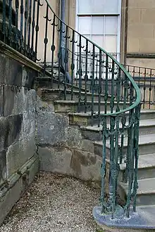 the handrail on the side of a staircase