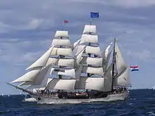 From Danish bark, from Middle French barque, from Late Latin barca, from Vulgar Latin barica, from Ancient Greek βάρις (báris, “Egyptian boat”), from Coptic ⲃⲁⲁⲣⲉ (baare, “small boat”), from Egyptian bꜣjr (“transport ship, type of fish”),