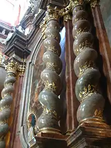 - The barley-sugar columns, carved in spiral channels with alternating bands of vine ornament, exist to this day though moved from their original site.