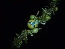 - Margaritaria nobilis, a plant of Mexico, Central America, South America, and the West Indies, which bears fruit with a complex surface structure which causes it to appear bright iridescent blue, or green if wet.