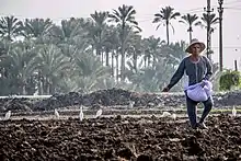 - (transitive) to sow a particular area (to scatter, disperse or plant seeds in)