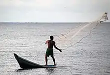 - (transitive) to cast in (to throw an object into, especially into a body of water)