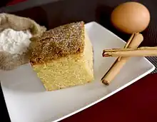 - a local variety of sponge cake made with clarified butter, eggs, flour and sugar