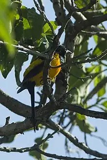 - Icterus wagleri, a species of Central American oriole which is coated in black and orange feathers.