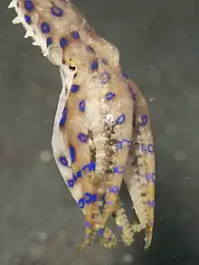 blue + ring + octopus. From being an octopus with very prominent bright blue rings all over its body.