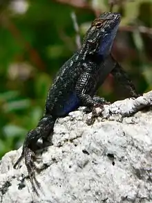 blue + belly. The ventral abdomen of the adult lizard is characteristically blue. The soldiers wore blue gaberdines.
