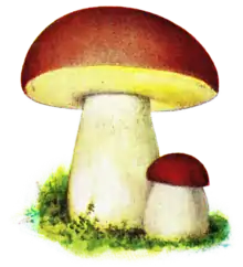 - A type of fruiting body produced by certain fungus species in the order Boletales, especially those of genus Boletus, many of which are prized for their flavour; any species of said order that produces such a fruiting body.