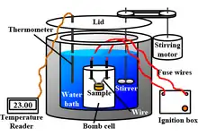 - (sciences) A type of constant-volume calorimeter in which material is burned to measure its heat content.