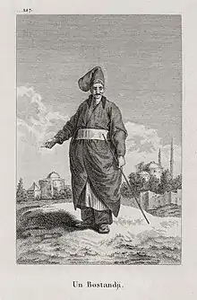 - "bostanji." Webster's Third New International Dictionary, Unabridged. Merriam-Webster. 2002.