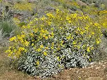 - A shrub native to deserts in the southwestern US and northern Mexico, Encelia farinosa.