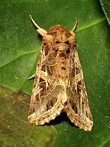 Mediterranean Brocade, a noctuid moth, Spodoptera littoralis, with patterns and textures suggesting brocade