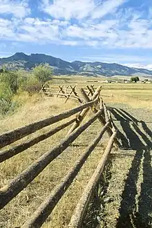 - (US) A fence constructed with wooden posts attached to form Xs and a top rail resting where they cross, or rails nailed on either side.