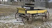 - A simple, distinctively American four-wheeled horse-drawn wagon designed for personal transport as well as for transporting animal fodder and domestic goods, often with a spring-mounted seat for the driver.
