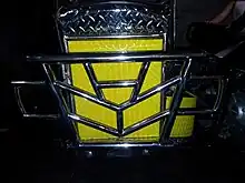 - (chiefly Australia, New Zealand) A welded framework of metal bars at a vehicle's front, designed to protect it during collisions with animals, but often purchased as a fashion accessory.