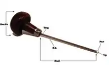 A burin (chisel) consisting of the handle, shaft, cutting tip and face.