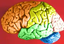 - (anatomy) brain, cerebrum (organ located in the anterior and superior part of the brain)