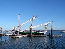 - (nautical) A small wooden trading vessel, brightly painted and rigged for sail, traditionally used for fishing and trawling.