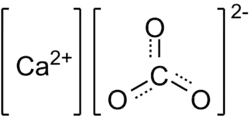 - (inorganic chemistry) A colourless or white inorganic compound, CaCO3, occurring as chalk, limestone, marble etc; reacts with acids to liberate carbon dioxide.