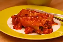 - Roll up each square into a cannellone and arrange them, seam-side-down, in a buttered, ovenproof dish.