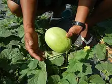 - A cultivar of the muskmelon (Cucumis melo), with bright yellow, wrinkled skin.
