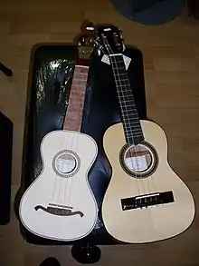 small guitar-string instrument of Brazilian origin, with four wire or gut strings