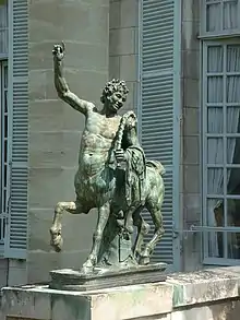 - (Greek mythology) A mythical beast having a horse's body with a man's head and torso in place of the head and neck of the horse.
