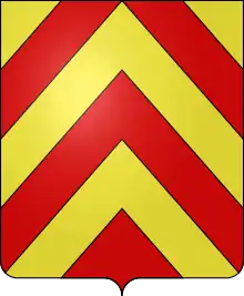 - Having chevrons, especially (heraldry) charged with chevrons.