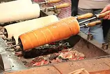 - A kind of long, cylindrical Hungarian pastry made from sweet yeast dough and roasted over charcoal, originating from the Székely people (kürtőskalács).
