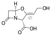 1. (organic chemistry, pharmacology) A beta-lactam compound C8H9NO5 produced by the bacterium Streptomyces clavuligerus that is a beta-lactamase inhibitor and is usually used in the form of its clavulanate salt of potassium especially in combination with amoxicillin.
