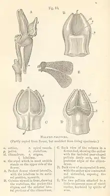 Figure 19 from the 1877 edition of Charles Darwin's Fertilization of orchids shows the clinandrium (clinandrum).