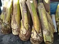 - Sweetish pith of a coconut palm obtained either: