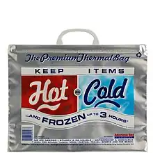 - Insulated bag used to keep food items cool for a limited amount of time (for example on the way from a grocery store to one's house).