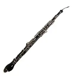 - (music) A double-reed woodwind instrument in the oboe family that is pitched in F, one-fifth lower than the oboe and is consequently approximately one-third longer than the oboe.