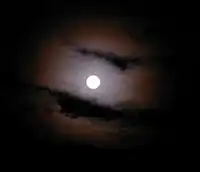 - (meteorology) A circle or set of circles visible around a bright celestial object, especially the Sun or the Moon, attributable to an optical phenomenon produced by the diffraction of its light by small water droplets or tiny ice crystals.