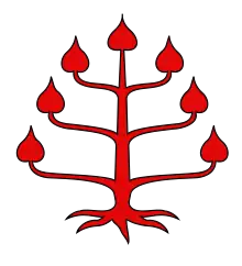 - (heraldry) A highly stylized tree of seven (less commonly, five) symmetrical branches, typically also depicted fruited, typically identified in English and French heraldic works as a wild cherry or wild plum.