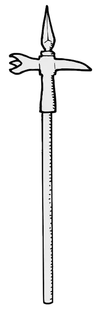 - (weaponry, historical) Synonym of bec de corbin (“poleaxe with a modified hammerhead and a spike mounted on the top of the pole”)