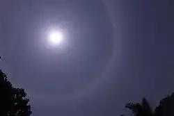 - kad taisās lietus, tad ap mēnesi var redzēt gaišu riņķi: mēness dārzu ― when it is going to rain, then one can see around the moon a bright ring: the moon's enclosure