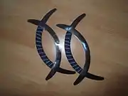 - A Chinese martial arts knife resembling two crossed crescents with all outward facing edges sharpened, and a handle on an inside arc of one of the crescents. The blade allows punching, slashing, and stabbing, as well as using the outward points as guards for defence to catch incoming weapons.