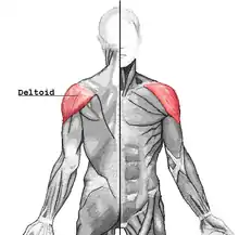 - (anatomy) The deltoid muscle, a triangular muscle on the human shoulder.