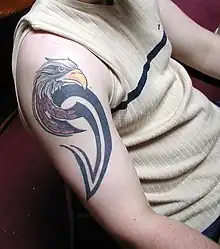 - tattoo (an image made in the skin with ink and a needle)