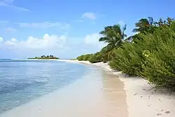 The islet of Sable Blanc in the Indian Ocean, the modern misconception of a desert island, although missing the typical single coconut palm