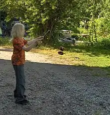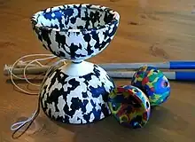 - A juggling apparatus consisting of a spool which is whirled and tossed on a string attached to handsticks.