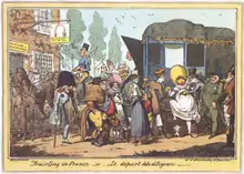 - (historical) A four-wheeled public stage-coach, widely used in France before the general establishment of the railways.