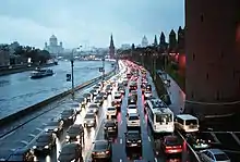 - traffic jam (situation in which road traffic accumulates until it is very slow)