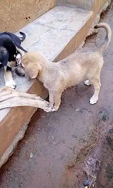 Inherited from Proto-Bantu *mbʊ́à. Cognate with Rwanda-Rundi imbwá, Tswana ntša and Zulu înjá.