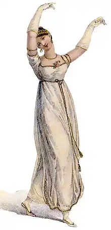- (fashion) A waistline on a woman's dress that is located immediately below the bust