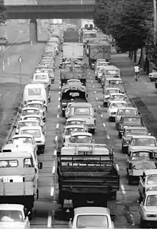 - traffic jam (situation in which all road traffic is stationary or very slow)