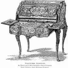 From French, from escrire, obsolete form of écrire + -oire, indicating a tool or object. Doublet of scriptorium.